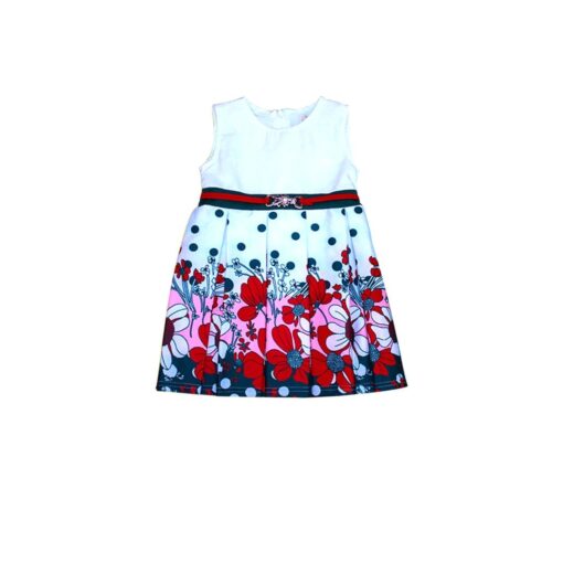 Dress your little girl in this stunning Girls’ Sleeveless Floral Party Dress, perfect for special occasions and memorable moments. Featuring an elegant floral print with vibrant red and pink hues, this dress is designed to make her stand out. The added waist belt accentuates the fit, offering a touch of sophistication, while the sleeveless cut ensures maximum comfort and freedom of movement. The premium-quality fabric provides durability and ease of wear, making it ideal for family events, birthdays, or festive celebrations.