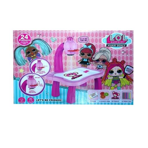 Let your child’s creativity shine with the LOL Surprise Hair Goals Projector Drawing Table, a delightful art station designed to make drawing more interactive and fun. This table features an adjustable projector that displays 24 unique patterns to guide your little artist. The set includes water pens and other drawing accessories, perfect for learning and developing artistic skills. Lightweight and easy to assemble, this table is ideal for indoor play and sparks endless imagination with its vibrant LOL Surprise theme.