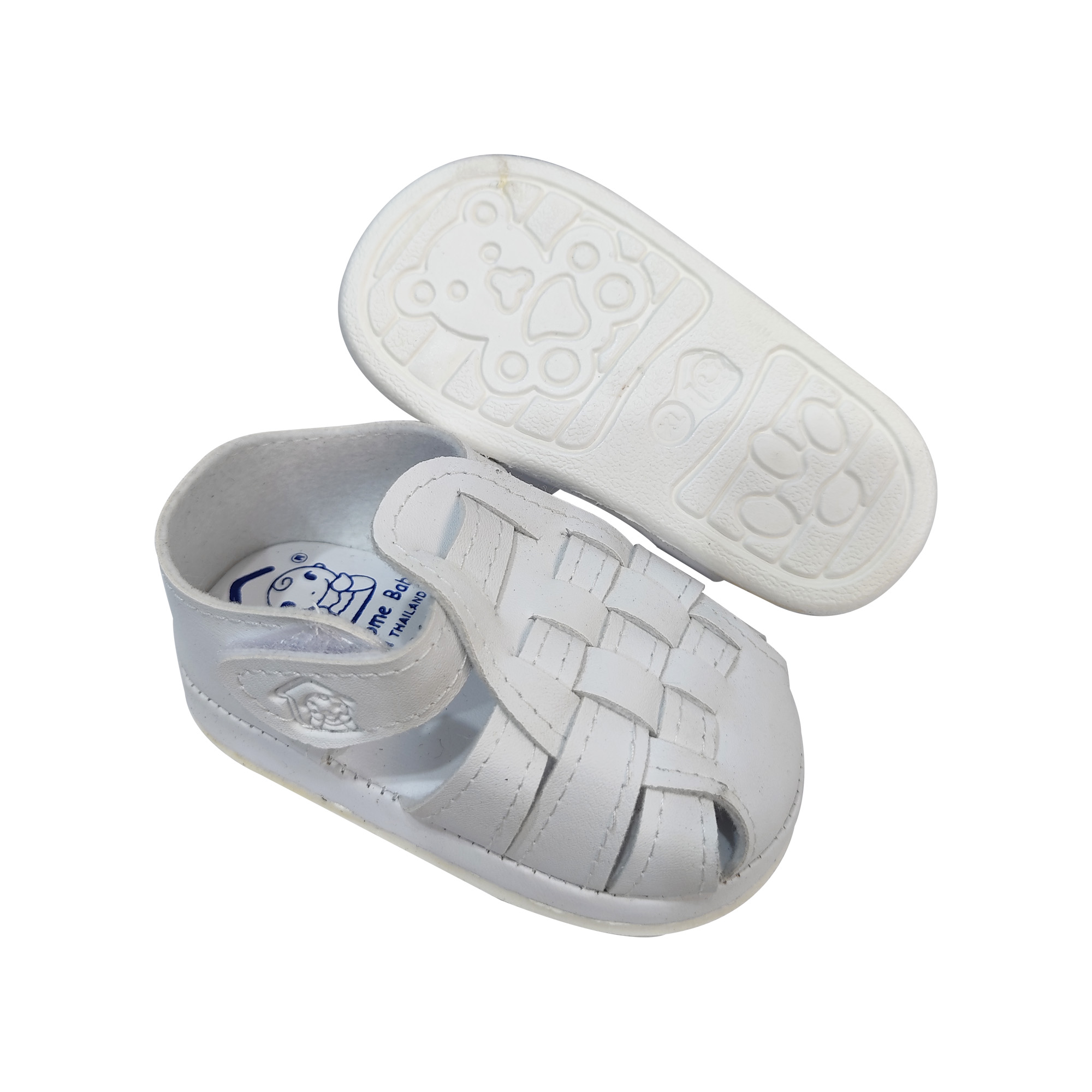 Step into timeless style with these classic white baby sandals! Designed for delicate feet, they feature a soft, breathable material that keeps your baby comfy all day. The anti-slip rubber sole ensures stability, while the woven open-toe design adds elegance and breathability. With an easy hook & loop closure, these sandals provide a secure and adjustable fit for your little explorer.